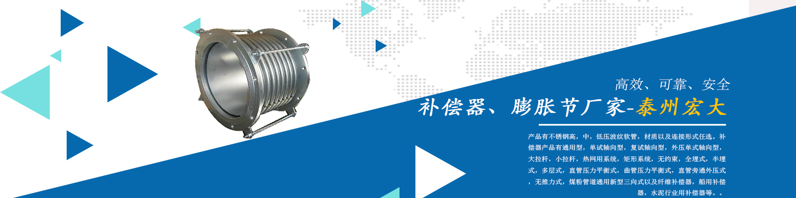 泰州市宏大機械設(shè)備有限公司是一個企業(yè)內(nèi)部管理嚴謹,工作作風穩(wěn)健,職工素質(zhì)水平較高,經(jīng)濟實力雄厚,產(chǎn)品質(zhì)量放心,外部形象良好的企業(yè)。本公司專業(yè)從事補償器廠家,膨脹節(jié)廠家,膨脹節(jié)補償器,其中有不銹鋼高,中,低壓波紋軟管,材質(zhì)以及連接形式任選。補償器產(chǎn)品有通用型,單試軸向型,復試軸向型,外壓單式軸向型,大拉桿,小拉桿,熱網(wǎng)用系統(tǒng),矩形系統(tǒng),無約束,全埋式,半埋式,多層式,直管壓力平衡式,曲管壓力平衡…...